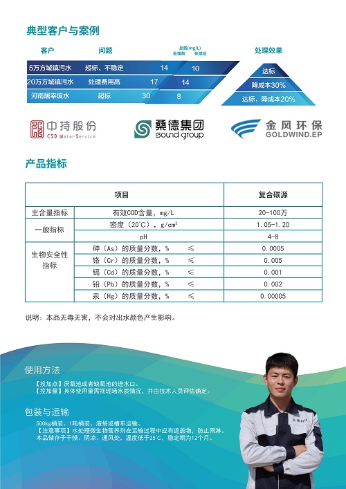 本品具有反應(yīng)快、吸收快、零下不結(jié)冰的特點(diǎn),尤其適合我國(guó)北方冬季水廠使用。在城鎮(zhèn)污水、河道治理、印染、食品、養(yǎng)殖、屠宰、電鍍、化工、垃圾滲濾液等行業(yè)廢水總氮處理上表現(xiàn)優(yōu)秀。